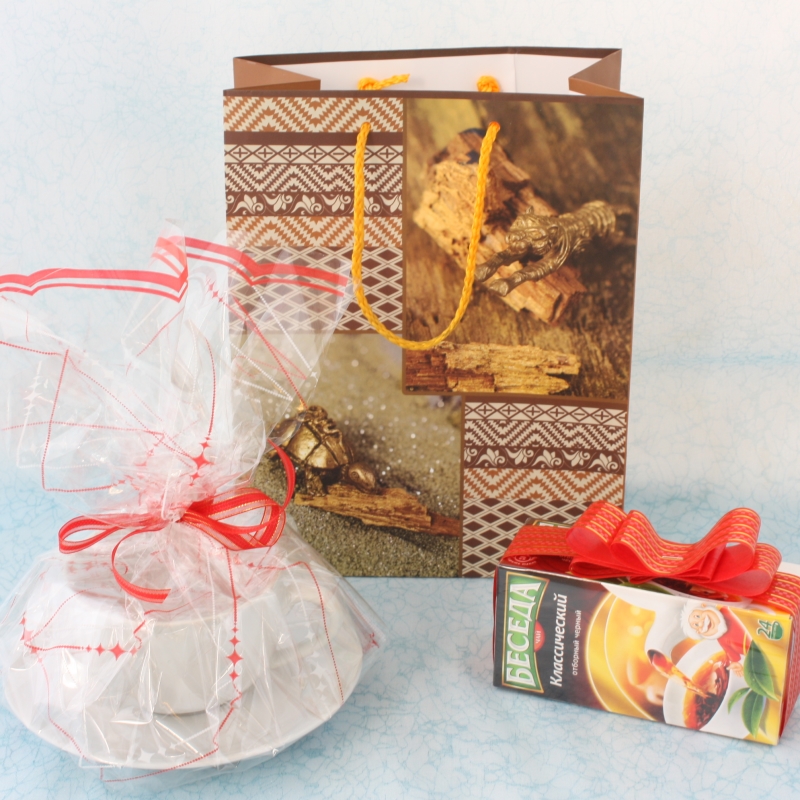Состав: чашка и блюдце, чай Беседа, подарочного пакета