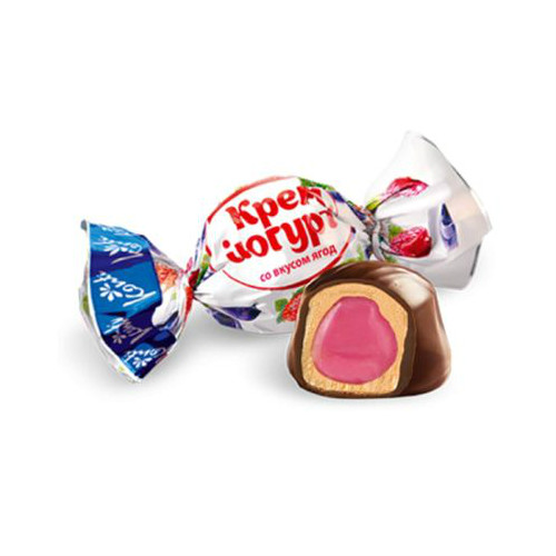 Конфеты Крем-йогурт со вкусом ягод производства компании "Конти" можно купить оптом с доставкой по Москве, Подмосковью и ЦФО. Низкая цена обусловлена отсутствием посредников при наличии прямого договора с производителем. Все актуальные сертификаты в наличии. Минимальный заказ: 1 коробка