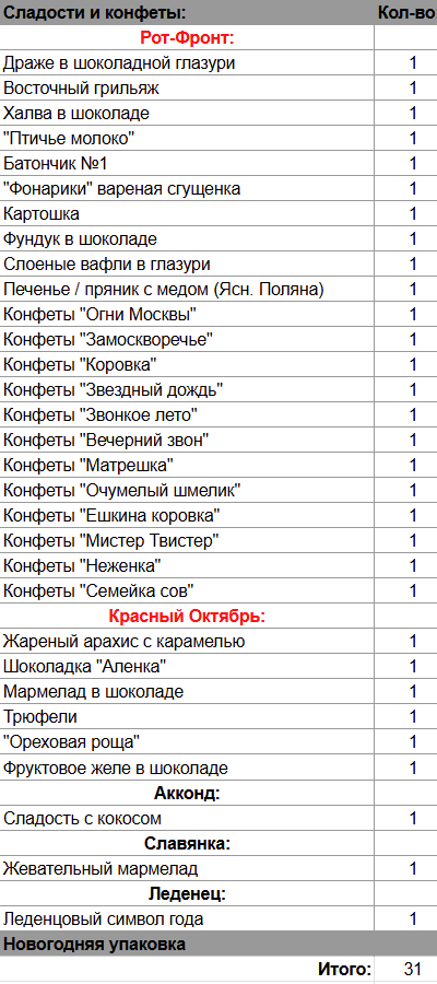 Интернет-магазин сладких новогодних подарков работает от производителя напрямую, за счет чего мы убираем посредников и снижаем цены на детские новогодние подарки. Кроме того, наша логистика позволяет доставить заказ практически в любой город за наш счет. Все цены на сладкие подарки актуальны