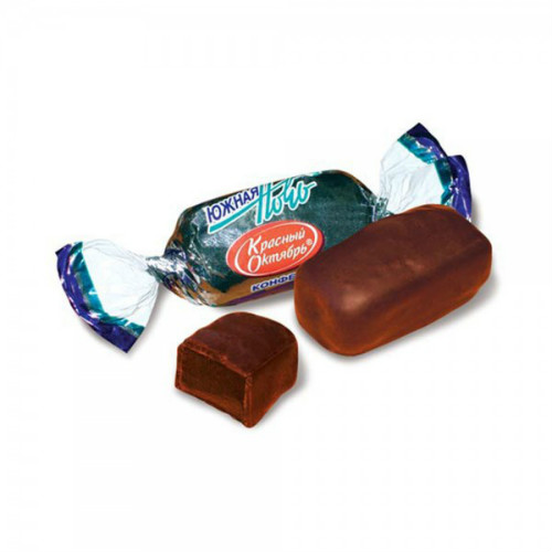 Конфеты Южная ночь производства Красный Октябрь можно купить оптом с доставкой по Москве, Подмосковью и ЦФО. Низкая цена обусловлена отсутствием посредников при наличии прямого договора с производителем.  Все актуальные сертификаты в наличии. Минимальный заказ: 1 коробка